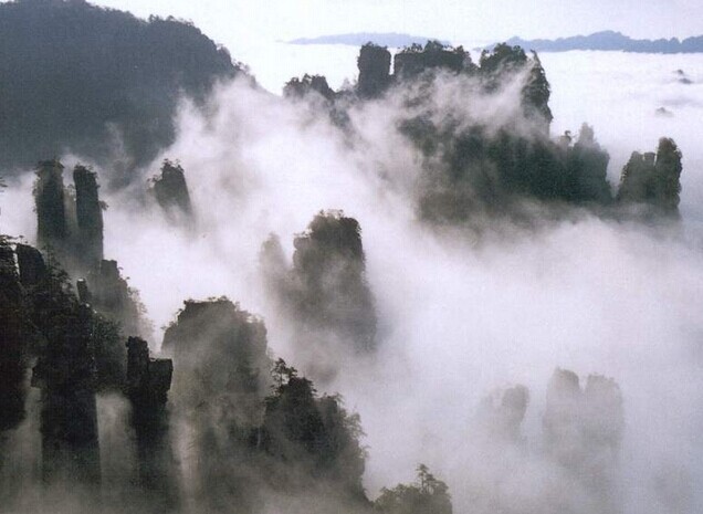张家界森林公园游览峰林之奇、非凡美境----【天子山景区】(1小时):负氧离子如丝般轻滑每一寸肌肤,每立方厘米空气含8万个负氧离子,看得见、摸得着的负氧离子肆意吞噬着你的身体,让你处可逃。峰起张家界,云上天子山,奇峰异石拔地而起,直立而密集,或列成方阵,或汇成峰海。游贺龙公园,御笔峰、仙女献花等景点。山下游峡谷两岸林木葱茏,野花飘香;奇峰异石,千姿百态,象一幅巨大的山水画卷的【十里画廊景区】:在流动的风景里呼吸张家界的味